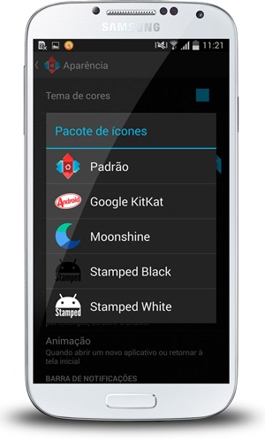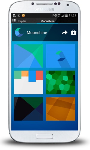 - Moonshine: tema para o Nova Launcher com papéis de parede e ícones inspirados nos novos rumores do Android.