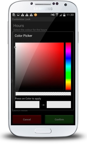 - Remova a transparência, com o cursor inferior posicionado no lado esquerdo do display. Toque a nova cor e finalize o processo.