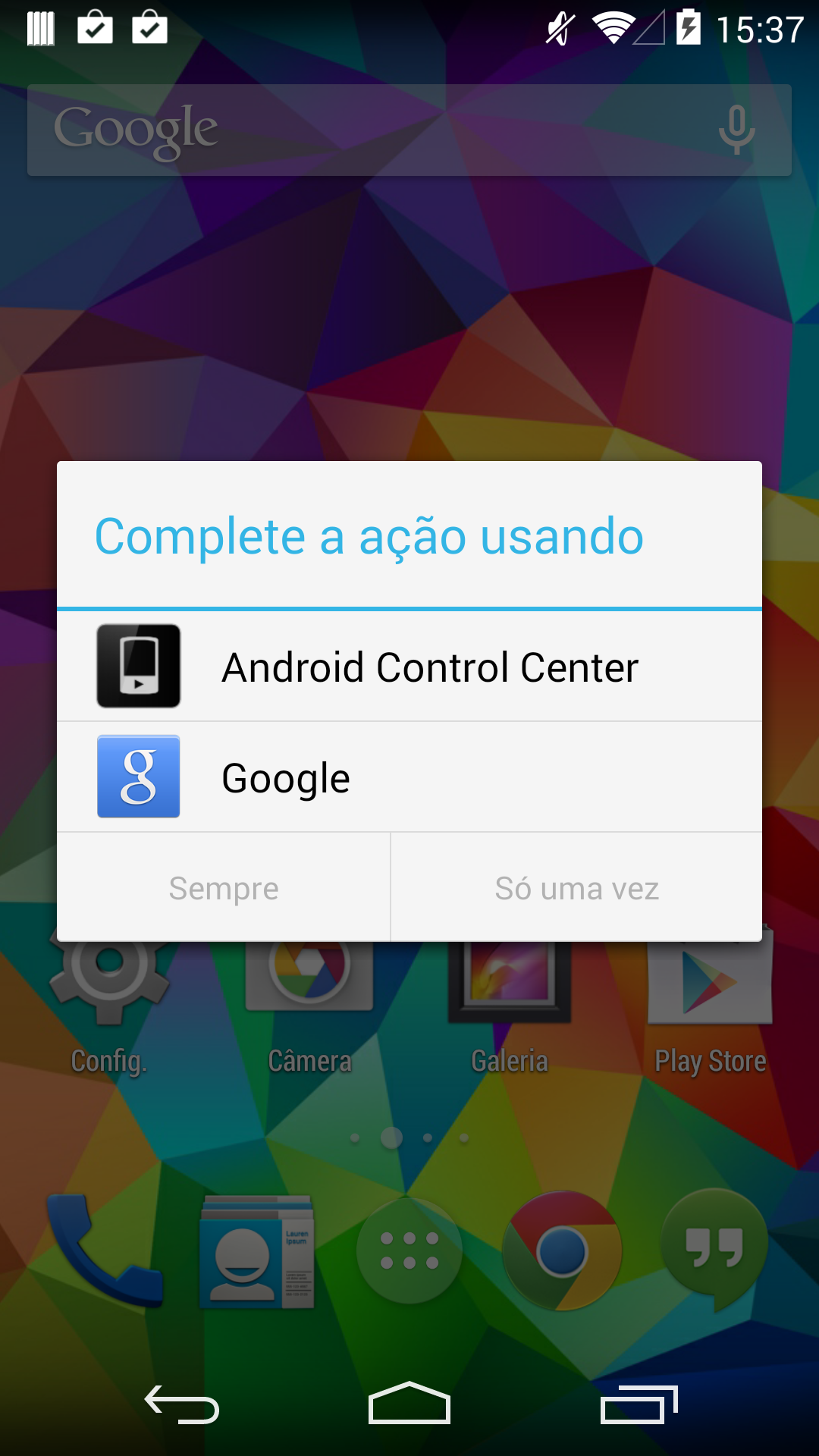 Agora, você deve ativar as funções do Quick Control Panel no seu aparelho. Caso o seu dispositivo tenha botões on-screen, segure a opção Home até que aquela espécie de aba para o Google Search seja aberta — e deslize o seu dedo até essa opção de trabalho. Uma nova janela vai aparecer e você deve completar a operação com o novo aplicativo, assim como mostra a imagem abaixo.