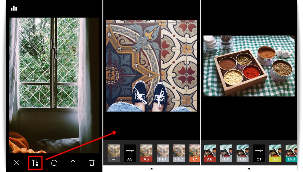 Ao abrir o VSCO pela primeira vez, existem duas opções: você pode abrir a câmera do app ou importar uma foto da galeria. As imagens importadas, mesmo que não tenham sido editadas ainda, aparecem na biblioteca do app. Clique duas vezes rapidamente para ampliar ou uma, para selecionar e ver as opções. Clicando no ícone em formato de ferramenta e pincel, você finalmente abre o editor.