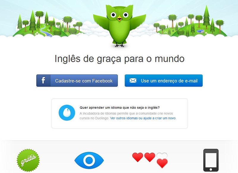 Duolingo é um site (e app) completamente gratuito no qual você pode aprender uma nova língua. O portal traz exercícios de vídeo, fotos e áudio para ajudar você a dominar uma língua estrangeira. O intercâmbio de linguagens já ocorre entre o inglês, o espanhol, o alemão, o francês, o italiano e o português, e o ensino ocorre com jogos e com diferentes estímulos para fazer você aprender brincando.