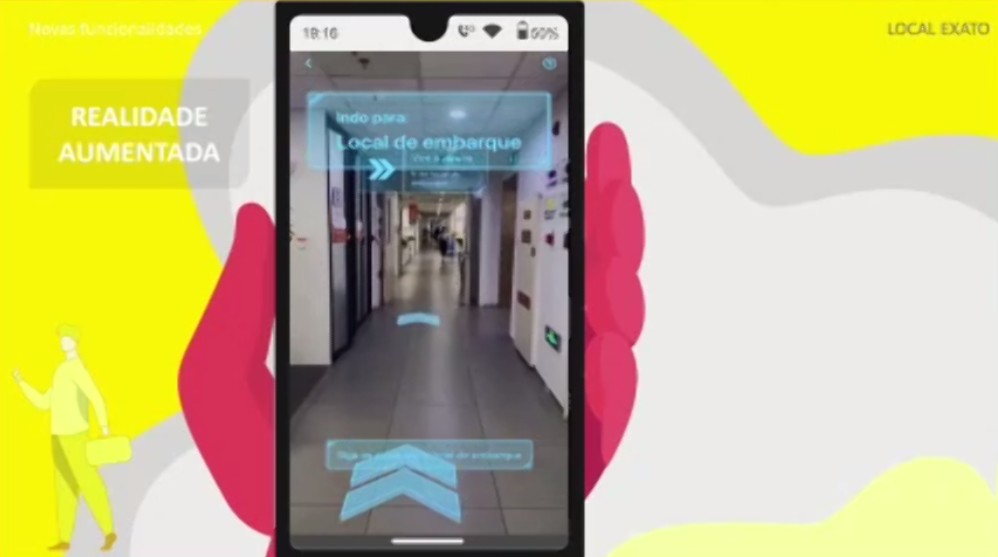 Uma grande reformulação dos aplicativos de transporte da 99, tanto de passageiros quanto de motoristas, está a caminho – e, de acordo com a empresa, a partir de janeiro, usuários poderão contar com recursos de realidade aumentada para encontrarem facilmente o local combinado para embarque em aeroportos. Ao abrir a câmera pela solução, setas e placas virtuais de sinalização indicarão, na tela, as informações necessárias ao encontro.